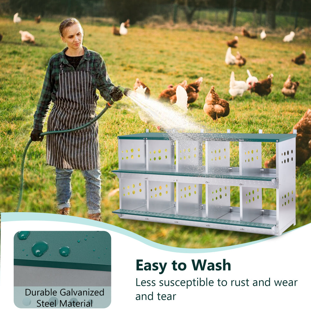 10-Bay Metal Nest Box-Wall Mount for Hens/Ducks, Easy Egg Collection & Assembly, Vented Galvanized Steel Coop Equipment Grenn