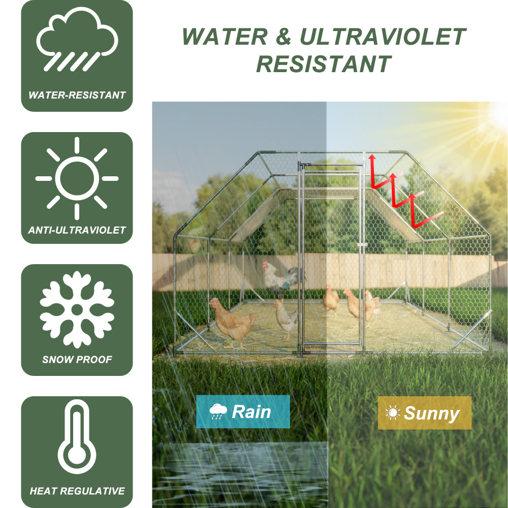 - Featuring galvanized coop, robust steel tubes with eco-friendly power coating finishing, guaranteed to last for years. The coating is protective and resists rust, corrosion, and fading so that the coop is weatherproof and of great durability.