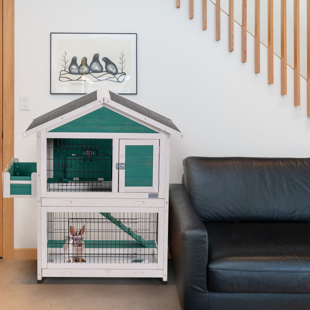 2-Story Wooden Rabbit Hutch Outdoor Indoor Bunny Cage Pull Out Tray,Waterproof Roof