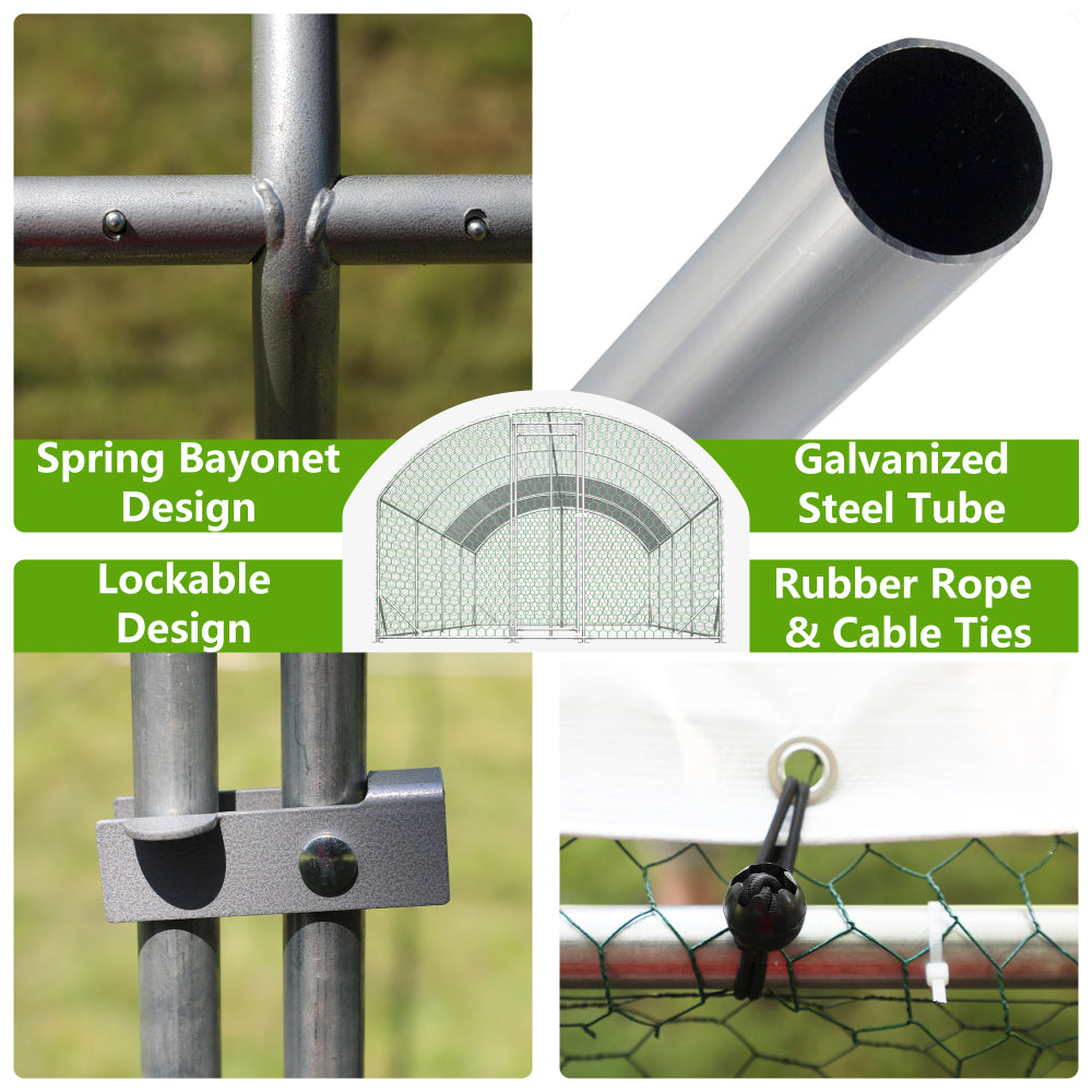 26'x9'x6'Large Metal Chicken Coop,Walk-in Poultry Cage,Chicken Run with Waterproof Cover,Outdoor Backyard Farm,Chicken Rabbits Duck Run Pen,Easy to Assemble And Clean