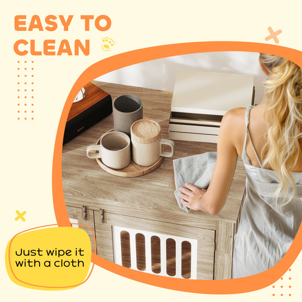 - - Robust Material: Constructed from melamine finish particleboard, this large dog crate furniture blends seamlessly with your home decor while making the maintenance easier.