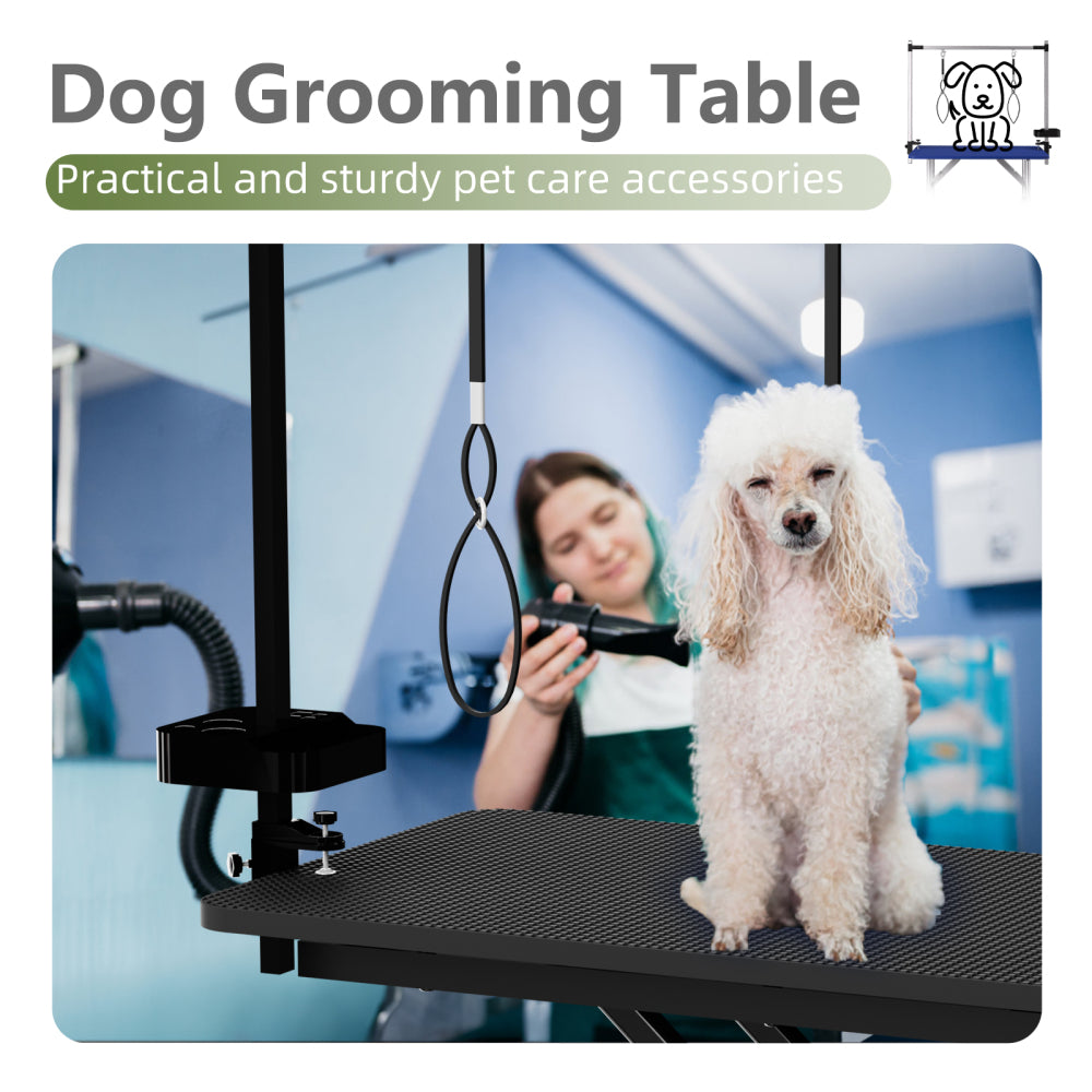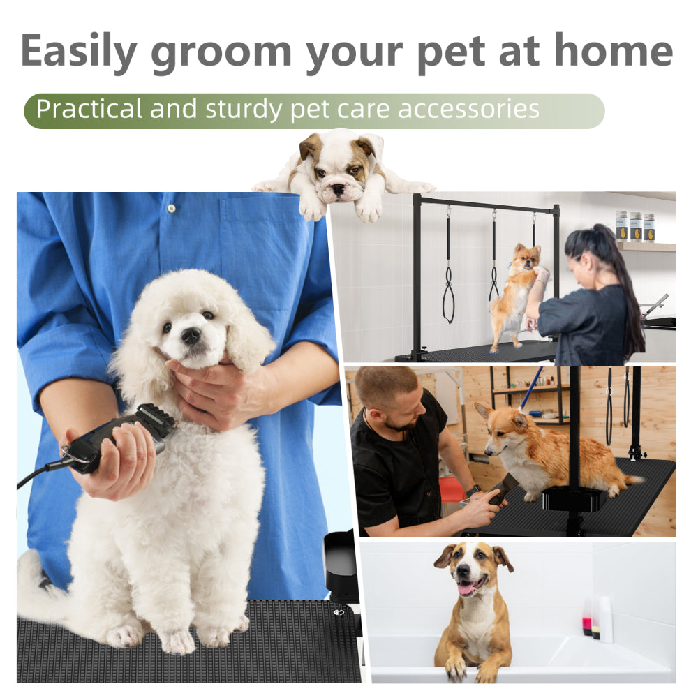 - Convenient Features: The included adjustable pet arm and dog leash allow for better stability while grooming your pets. Plus, the grooming table comes with a storage box for pet supplies, making it more convenient to access your tools during grooming.