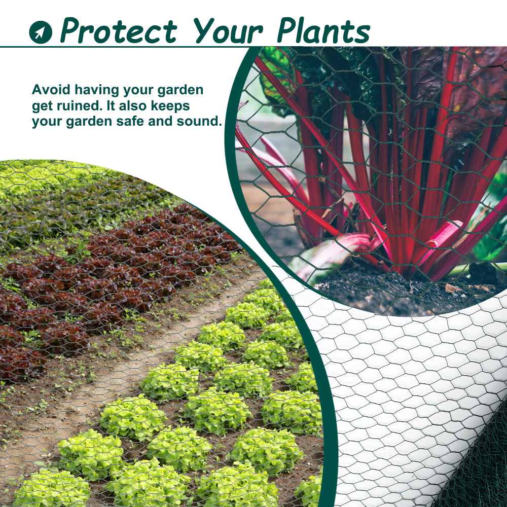 - PREMIUM LONG LASTING QUALITY: Our poultry netting chicken wire is made using high quality marital and green coated plastic before packing to ensure long-term use. Ideal for making garden fences, chicken enclosure, livestock confinement, runs and cages for pets, lawn netting and more!