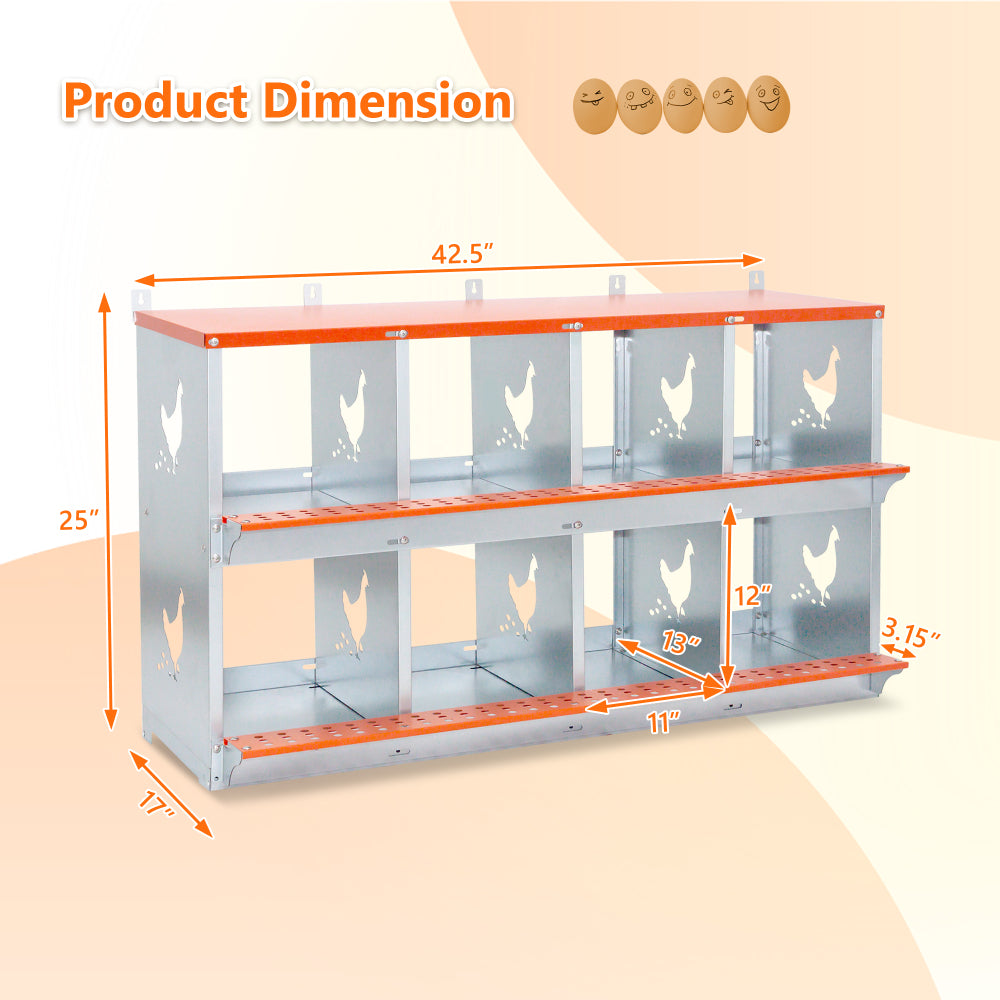 8-Bay Metal Nest Box-Wall Mount for Hens/Ducks, Easy Egg Collection & Assembly, Vented Galvanized Steel Coop Equipment Orange