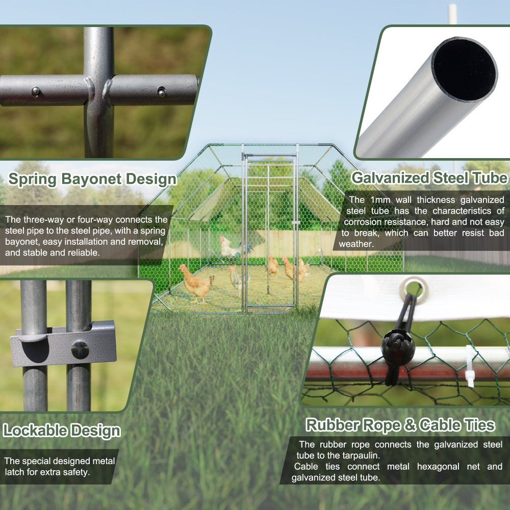 9.94 ft. x 25.68 ft. Galvanized Large Metal Walk in Chicken Coop Cage Farm Poultry Run Hutch Hen House