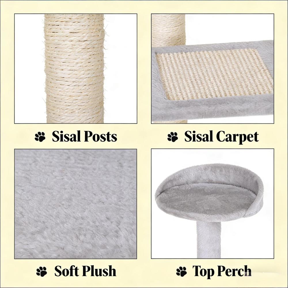 - Multi-activity center with perch, sisal wrapped post for endless entertainment