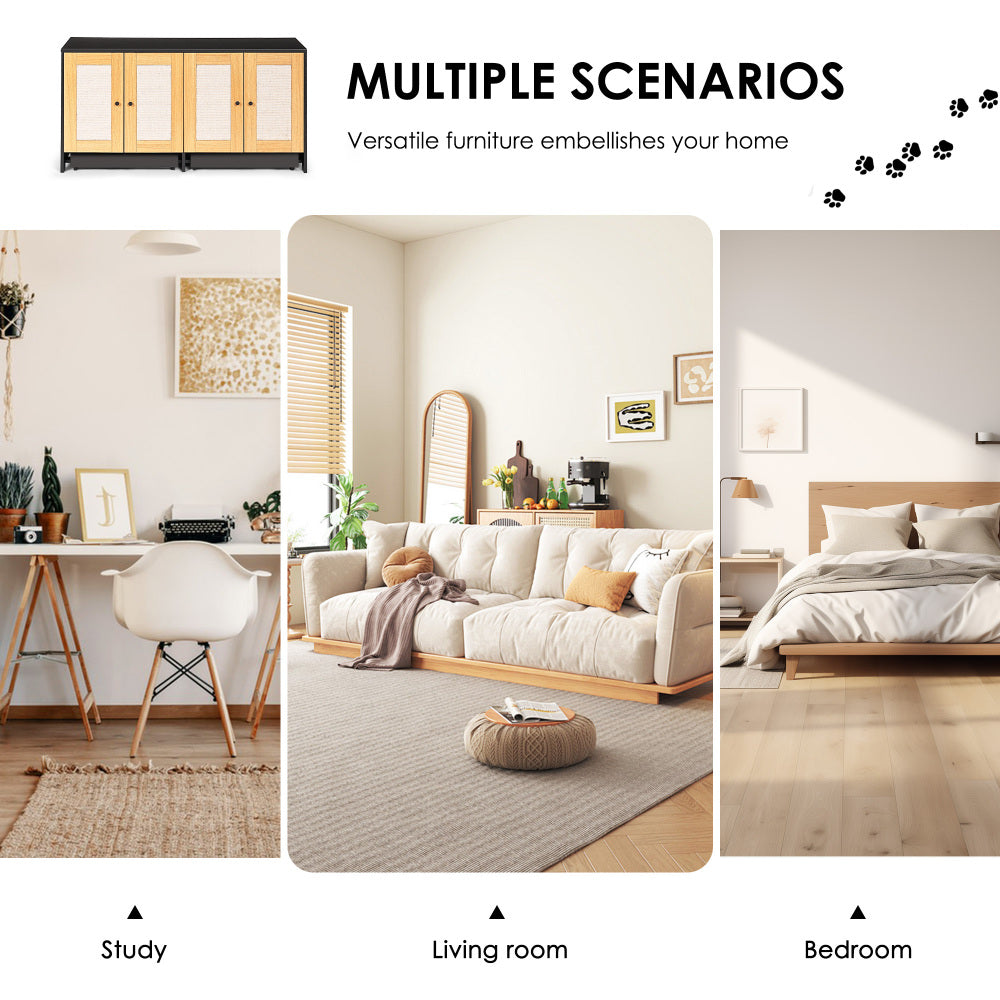 - Cat scratching board door panel: The door panel is covered with sisal cloth, which is not only beautiful but also can meet the habits of cat scratching