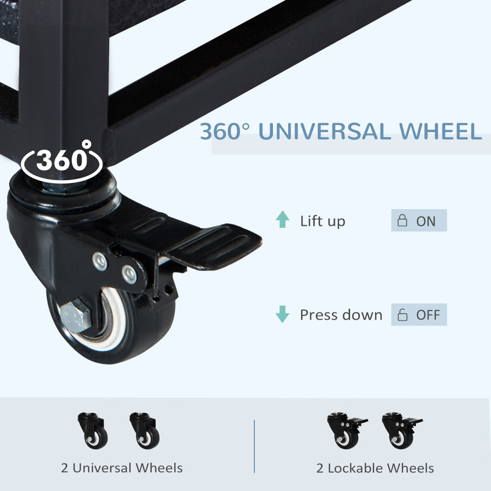 - Equipped with four caster wheels for mobility, two with brakes for stability