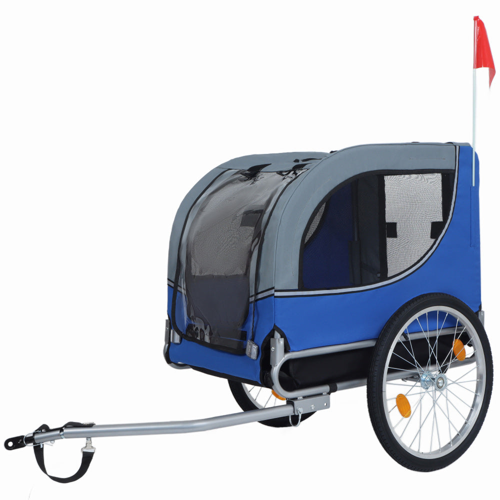 Large Folding Bike Trailer for Dogs – 66LB Capacity All-Terrain Pet Carrier, Durable Steel Frame for Cycling, Jogging, Camping & Outdoor Adventures, Blue- Grey