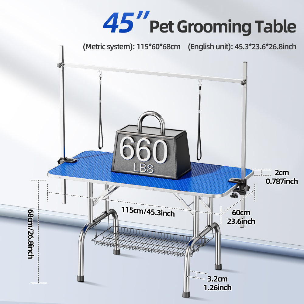 Large Grooming Table for Pet Dog and Cat with Adjustable Arm and Clamps Large Heavy Duty Animal grooming table, 46''/blue