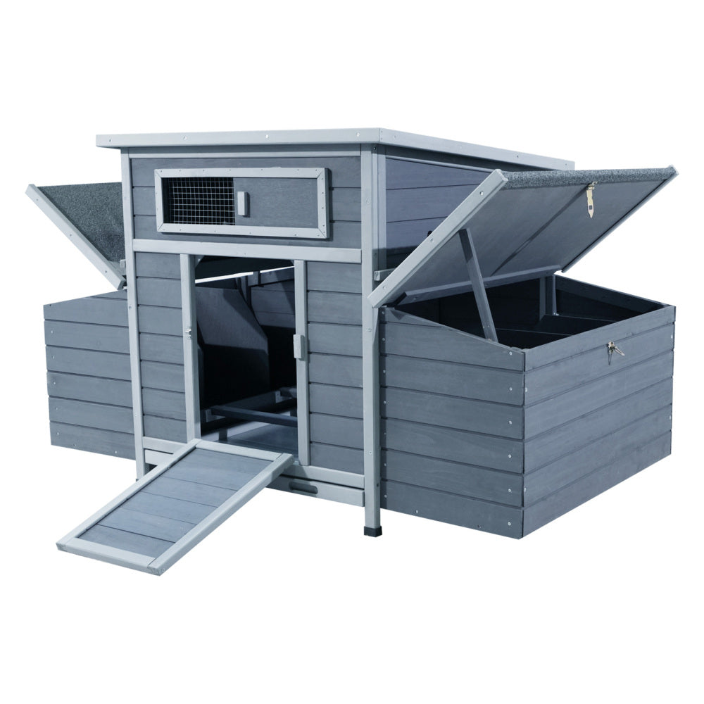 Large Wooden Chicken Coop Outdoor Hen House Poultry Cage for Outdoor with 2 Sides Nesting Boxes
