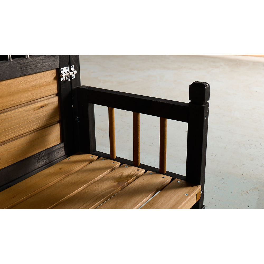 Large Wooden Dog House with Storage Box and Feeding Station, Outdoor Pet Kennel with Asphalt Roof, Porch, and Lockable Door – Weatherproof Fir Wood Dog Home for Small to Medium Dogs