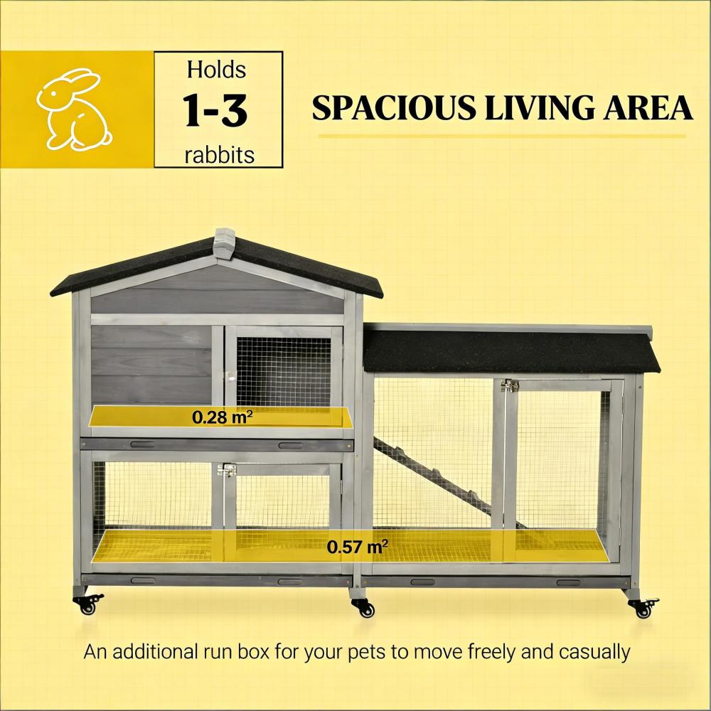 - - ADDED MOBILITY: The bunny hutch is equipped with wheels, so you can quickly move it without using a lot of effort, and two of them can be locked to keep this bunny house in place.
