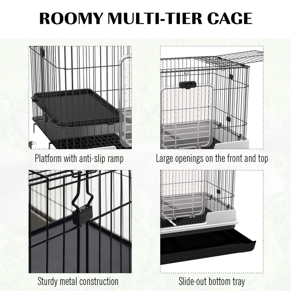 PawHut 2-Level Small Animal Cage Rabbit Hutch with Wheels, Removable Tray, Platform and Ramp for Bunny, Chinchillas, Ferret, Black