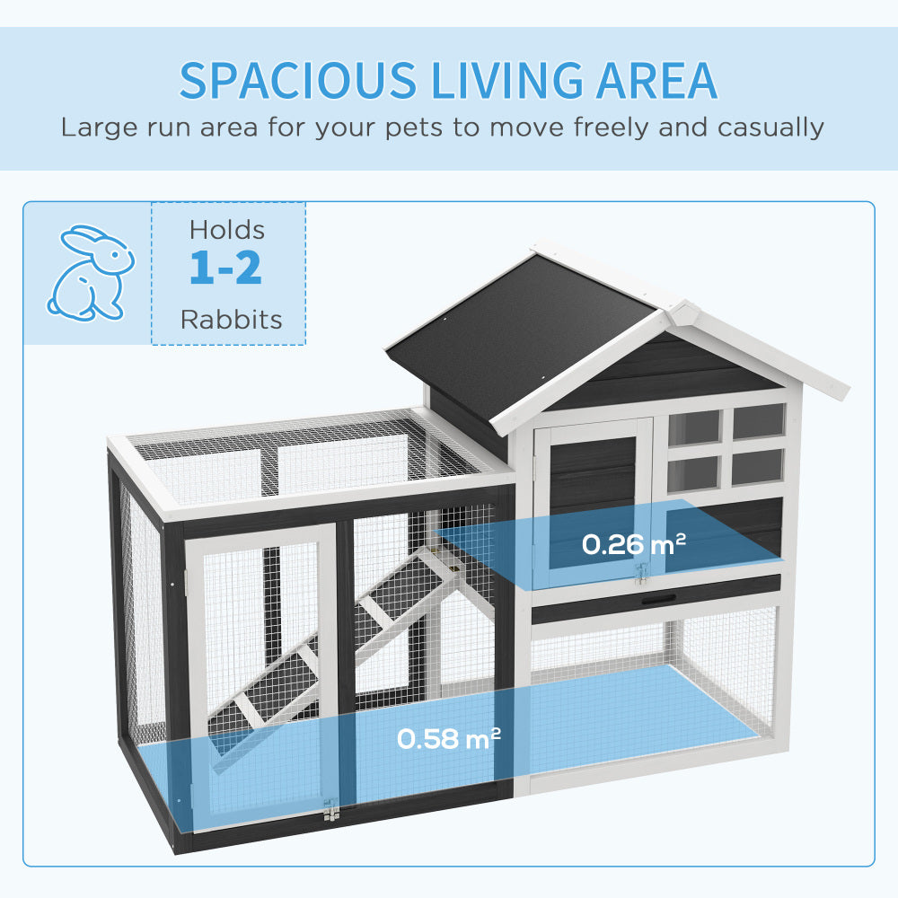 PawHut 48" Wooden Rabbit Hutch Bunny Cage with Waterproof Asphalt Roof, Fun Outdoor Run, Removable Tray and Ramp, Grey