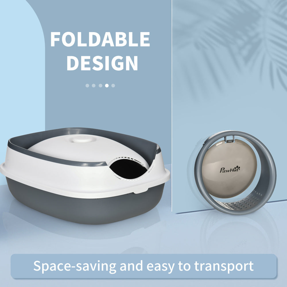 PawHut Cat Litter Box with Lid, Covered Litter Box w/ High Sides, Air Freshener, Large Two-Way Entrance Kitty Litter Box, Foldable, Easy Clean, White, and Gray