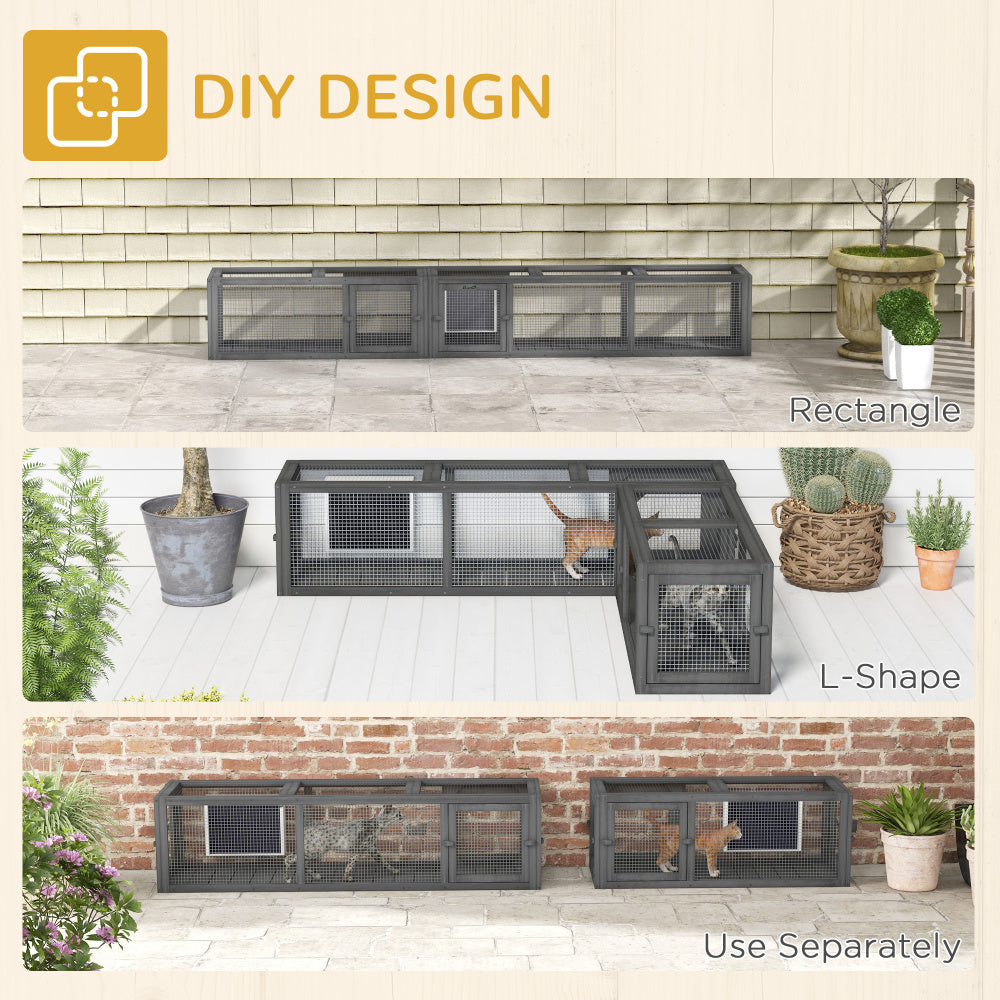 PawHut Cat Tunnel Outdoor, Wooden Cat Tube with Combinable Design, 8 Doors, 98" Cat Toys for Kitty, Puppy, Pet, House, Window, Cage, Dark Gray