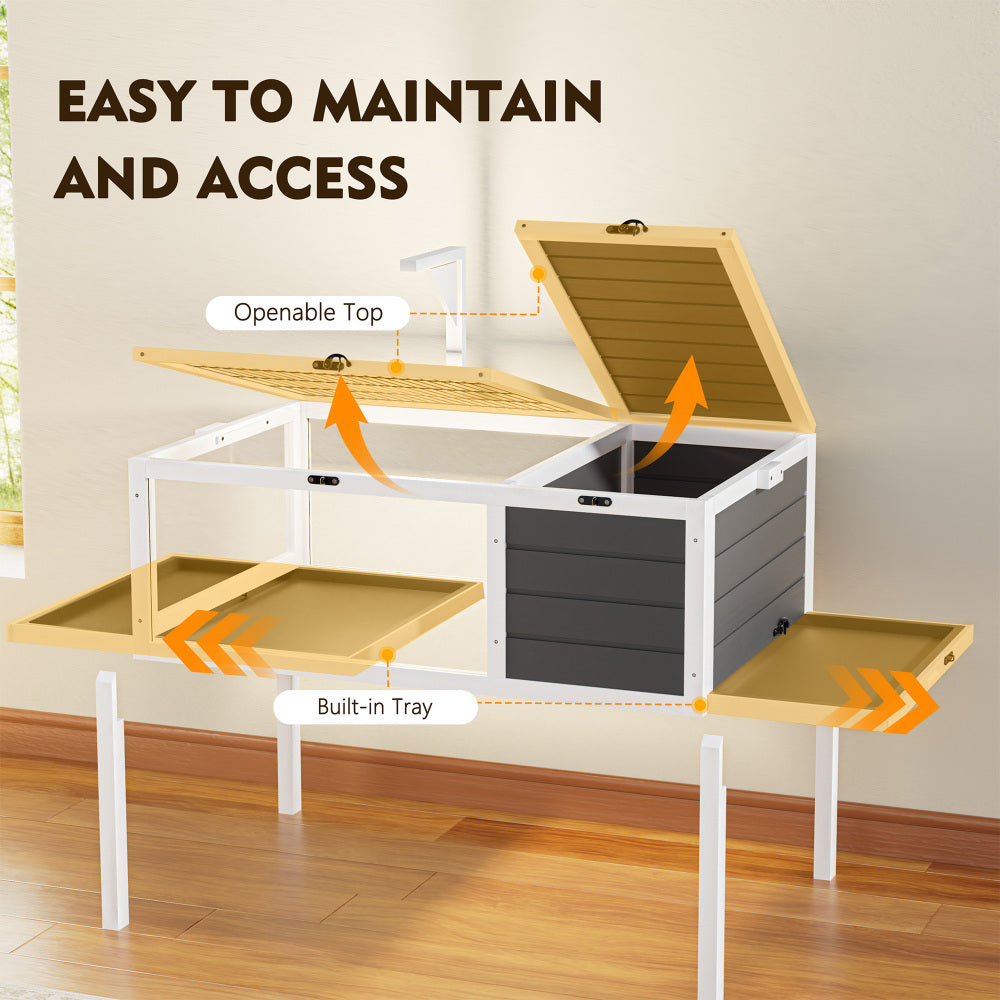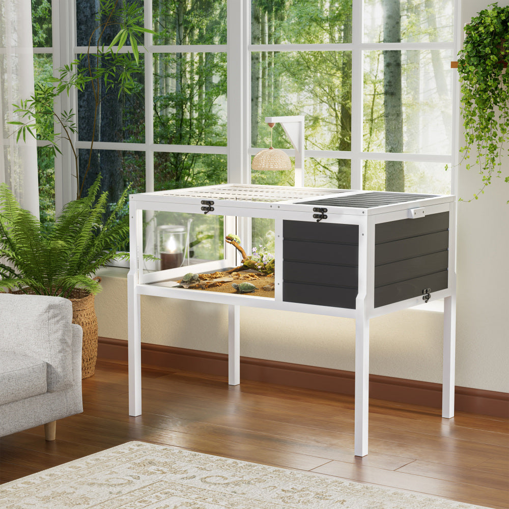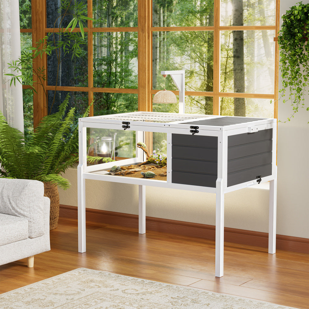 Reptile Habitat Tortoise House with Lamp Holder, Large Observation Window, Waterproof Tray, Detachable Legs, Easy to Clean Wooden Enclosure for Turtles, Lizards, Geckos, and Small Pets Indoor Outdoor
