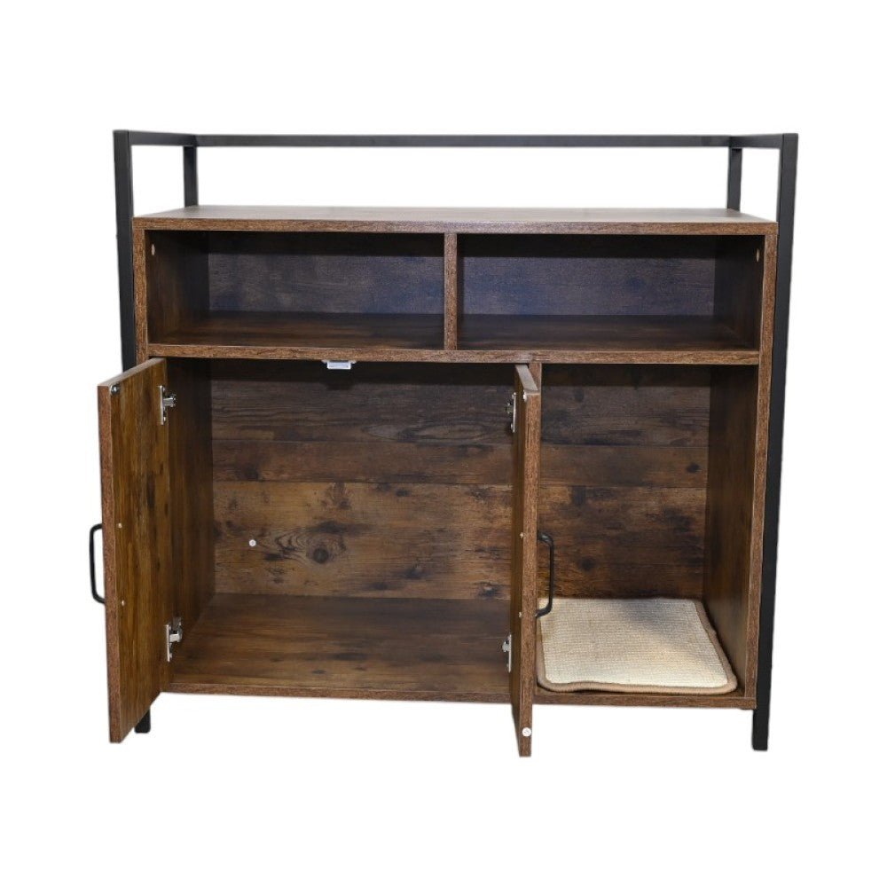 Rustic Brown Wooden Cat Litter Box Enclosure, Spacious Hidden Cat Litter Box with Scratching Mat Furniture for Bedroom, Bathroom, Living Room-31.9"x17.7"x31.4", 61 lbs