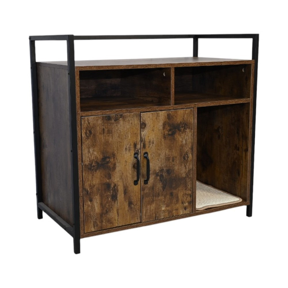 Rustic Brown Wooden Cat Litter Box Enclosure, Spacious Hidden Cat Litter Box with Scratching Mat Furniture for Bedroom, Bathroom, Living Room-31.9"x17.7"x31.4", 61 lbs