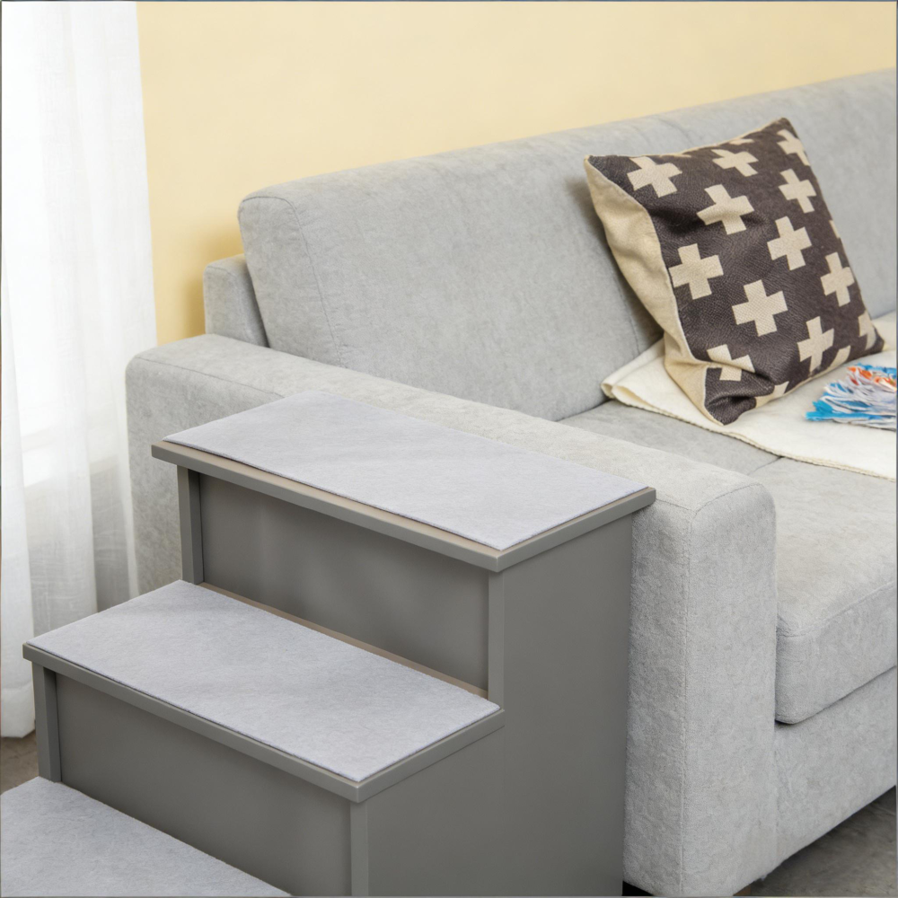 - Four-step pet stairs with neutral color tones go great with your existing furniture