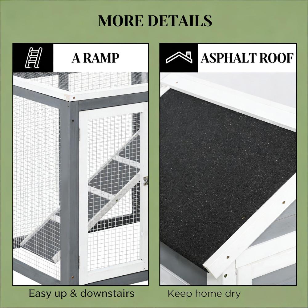 - - DURABLE MATERIAL: Made of durable fir wood and a composite asphalt roof, this outdoor rabbit hutch will keep your furry friends dry for years to come.