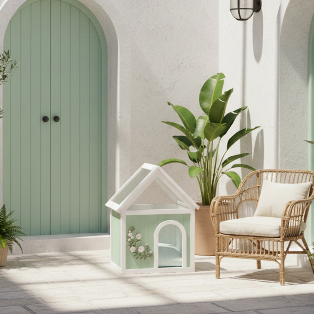 - Featuring a transparent acrylic roof that gently diffuses sunlight while providing your pet with a sense of openness and security. The front panel includes an optional decorative wood carving, blending artistic detail with practical functionality.