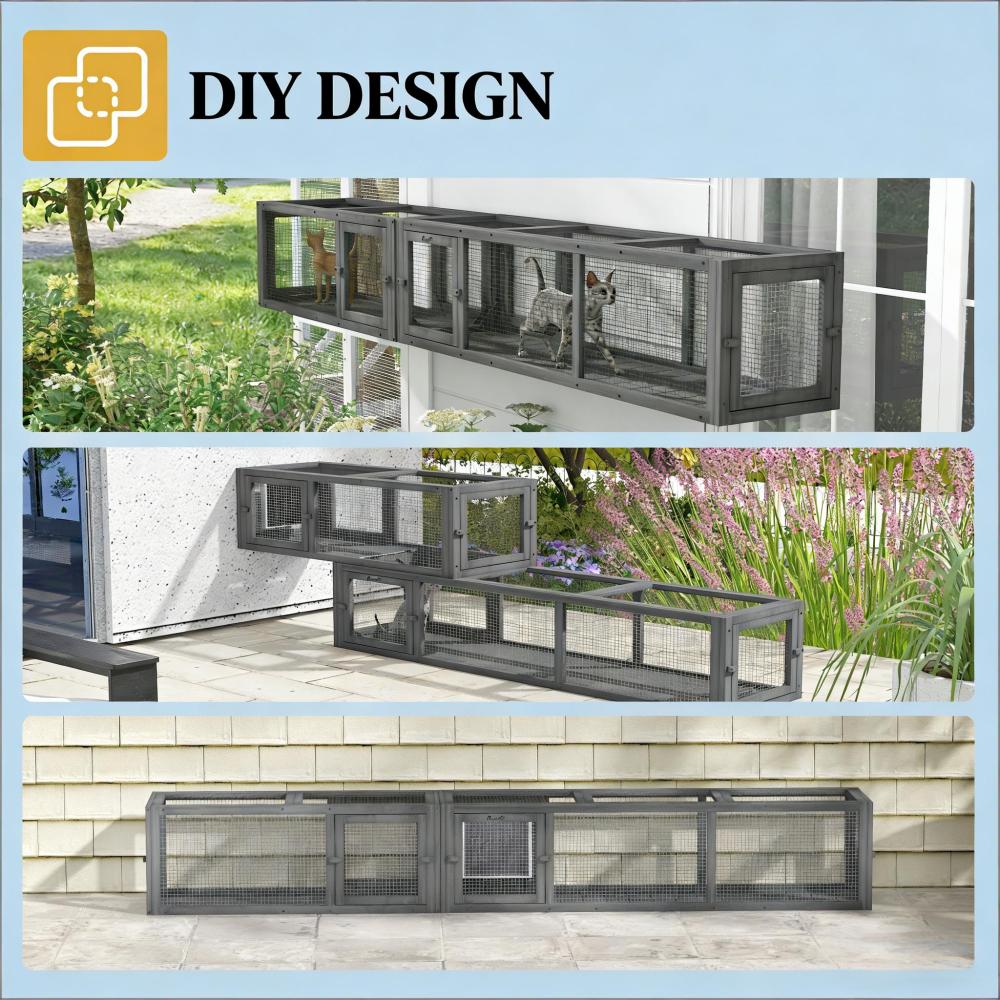 - - Versatile Configuration: This wooden cat tunnel features a flexible design, allowing it to be used separately or combined into an L shape or rectangle, acting as a great outdoor cat shelter or addition to your cat's play area.