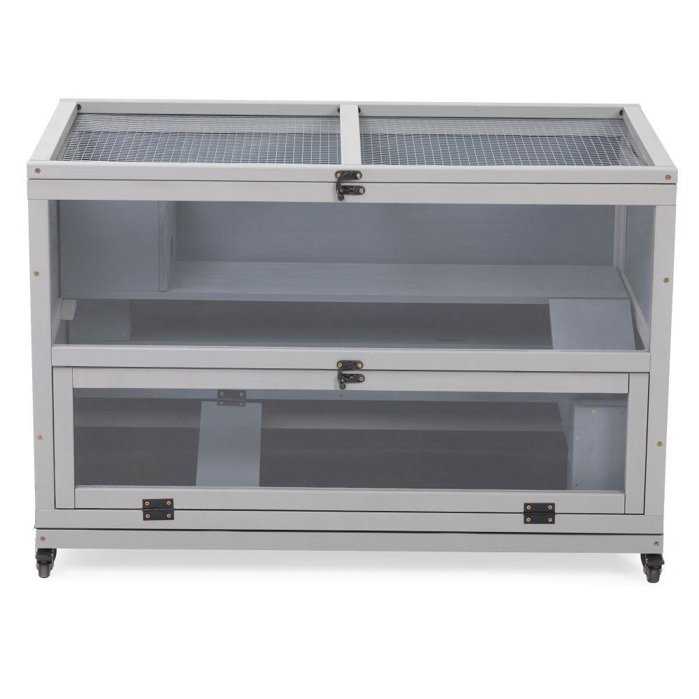 - 【Pet-Safe and Durable】: Built from chew-resistant pinewood, sturdy galvanized mesh, and see-through acrylic, all in a chic two-tone gray, the hamster habitat is designed for long-term use while looking stylish indoors.