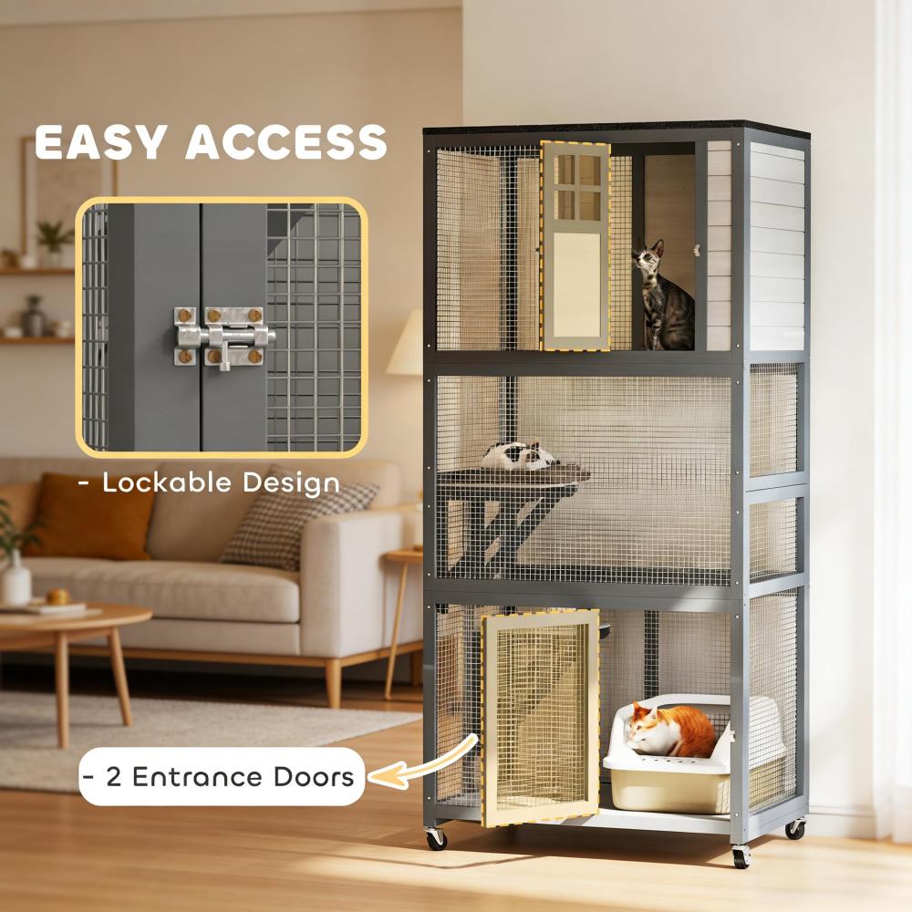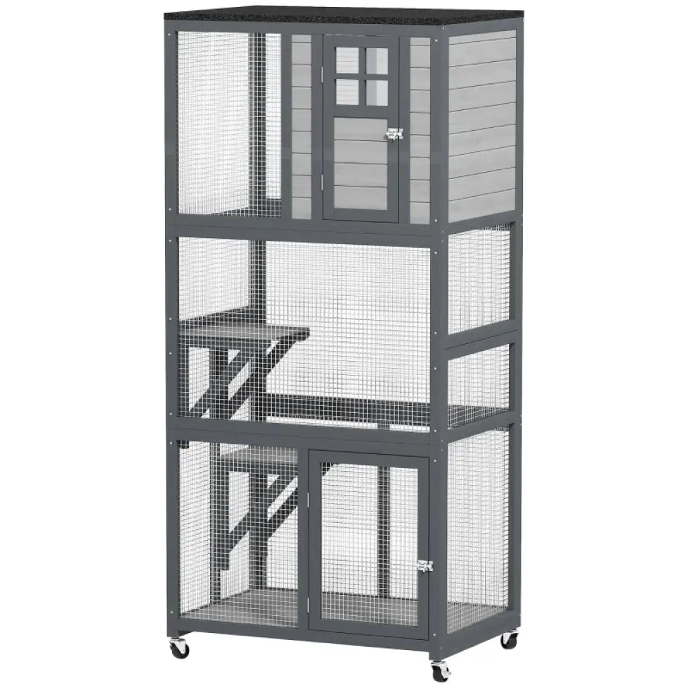 - - Outdoor Fun: Eliminate the disheartening moments when your cats want to come outside and aren't allowed. Give your cats a place to be at great heights in the great outdoors. Add new enjoyment, hearing the noises of the world outside. The room our catio provides is big enough for one furry friend to have plenty of space or up to three to play and lounge. The box at the top is high above the ground to offer a great deal of distance for kitty.