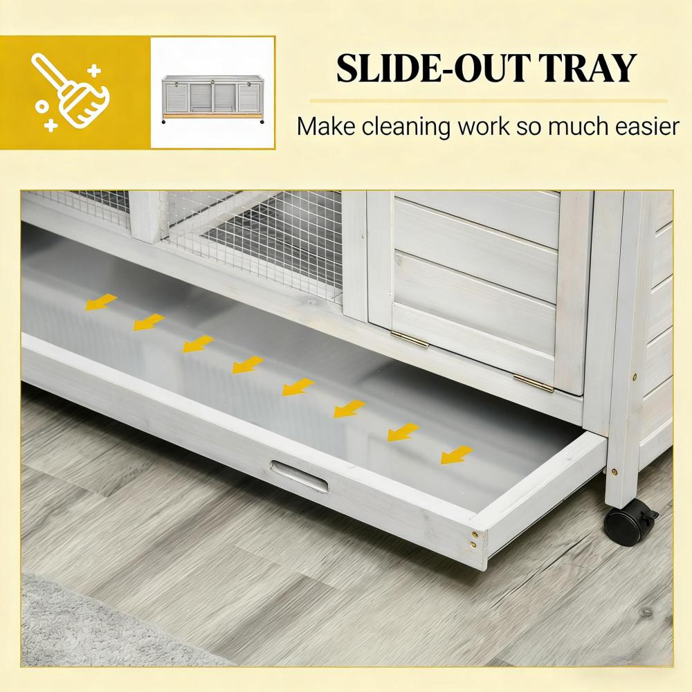 - - Easy to Maintain: Cleaning work will be so much easier with this rabbit hutch. A built-in no-leak slide-out tray is under the nest.